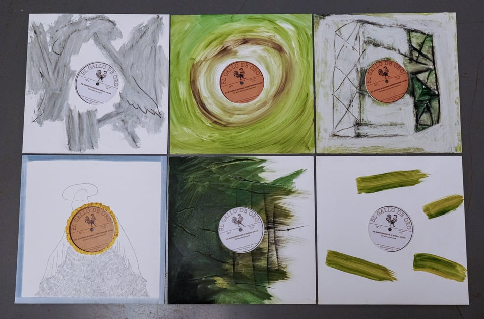Hello, hello. Last time I was here, I said that my new record would be properly released in July… Well, needless to say that did not happen. Sophia and I got very busy with our wedding in August, and then teaching obligations swallowed me whole in September. The records also took longer to produce than I initially expected — I ended up making 50 small paintings in total for the sleeves.